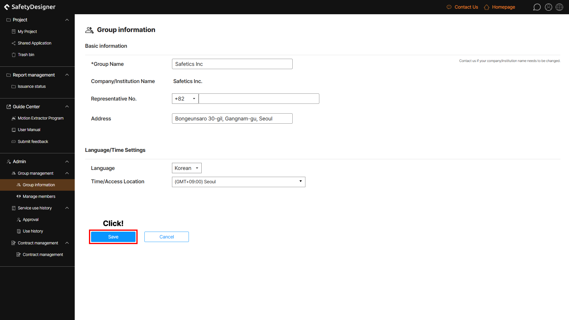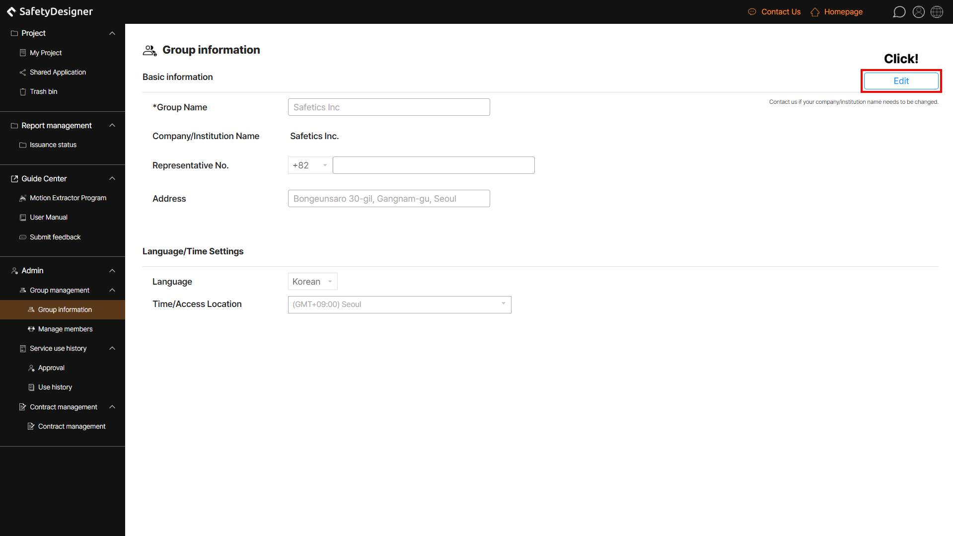 Member invitations and group management capabilities provide convenient access to SafetyDesigner for all members of your group. The Group Information page allows you to modify your group information, and only a group administrator account can access this menu.